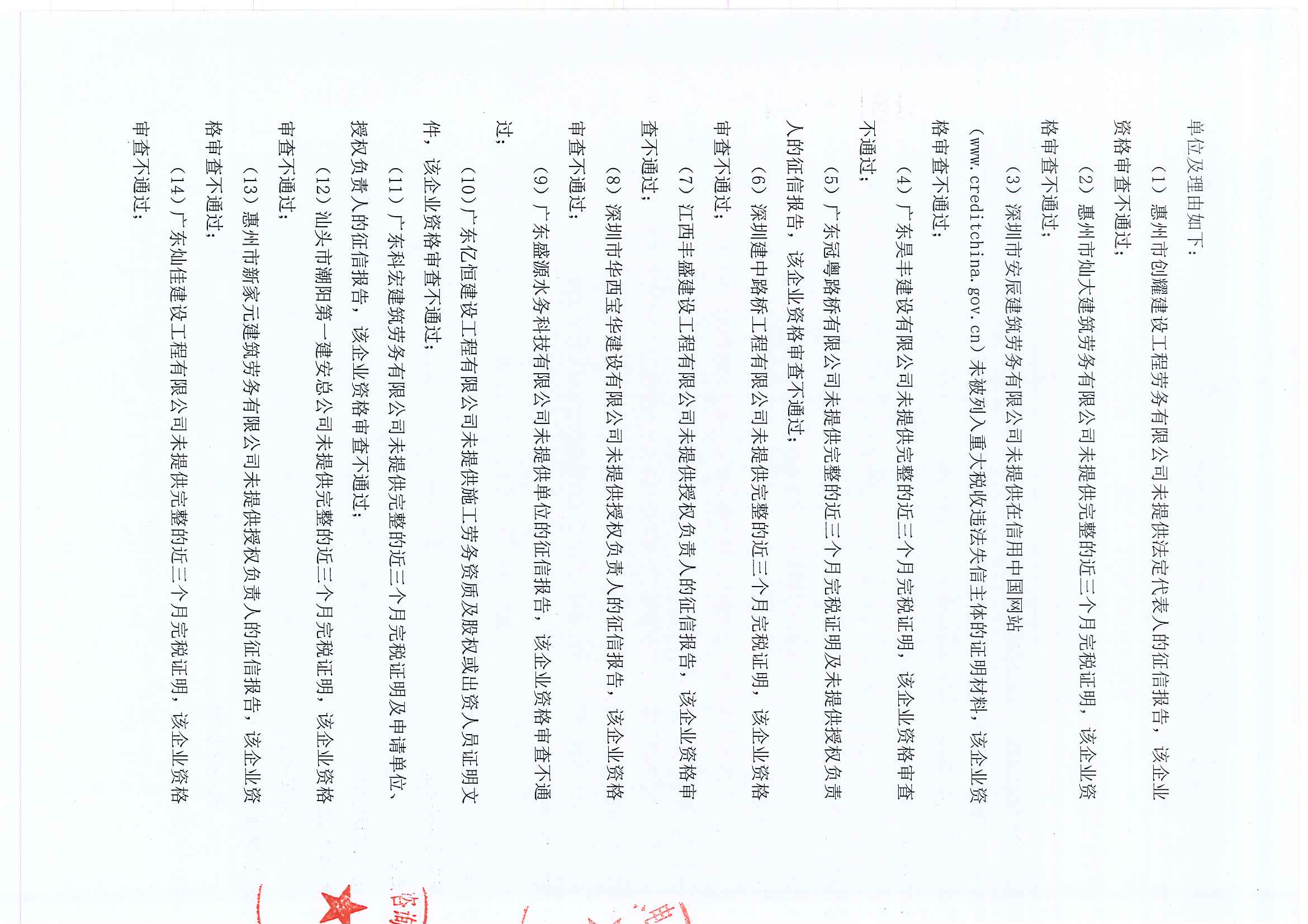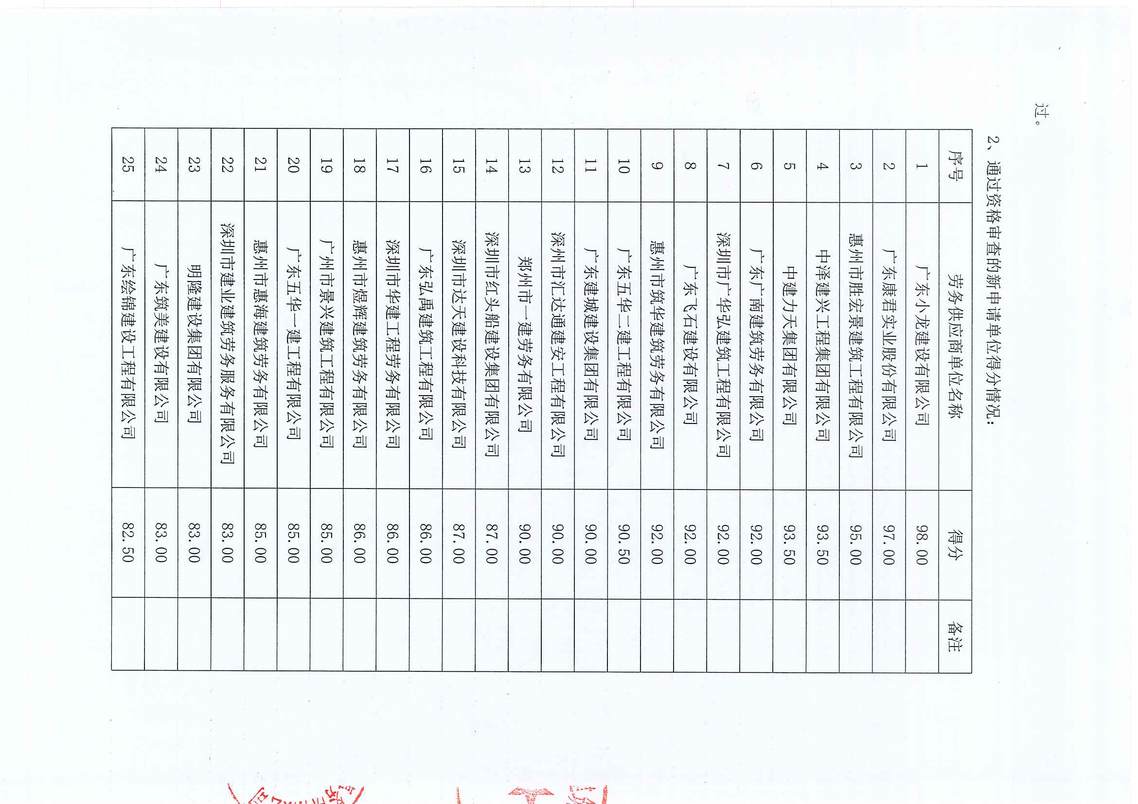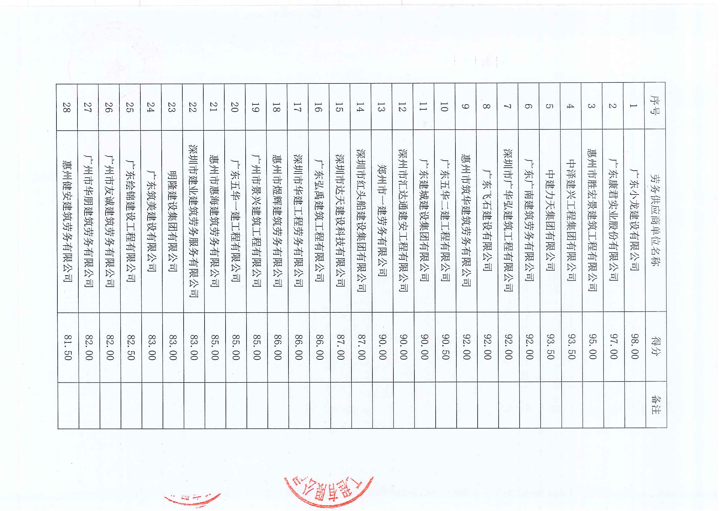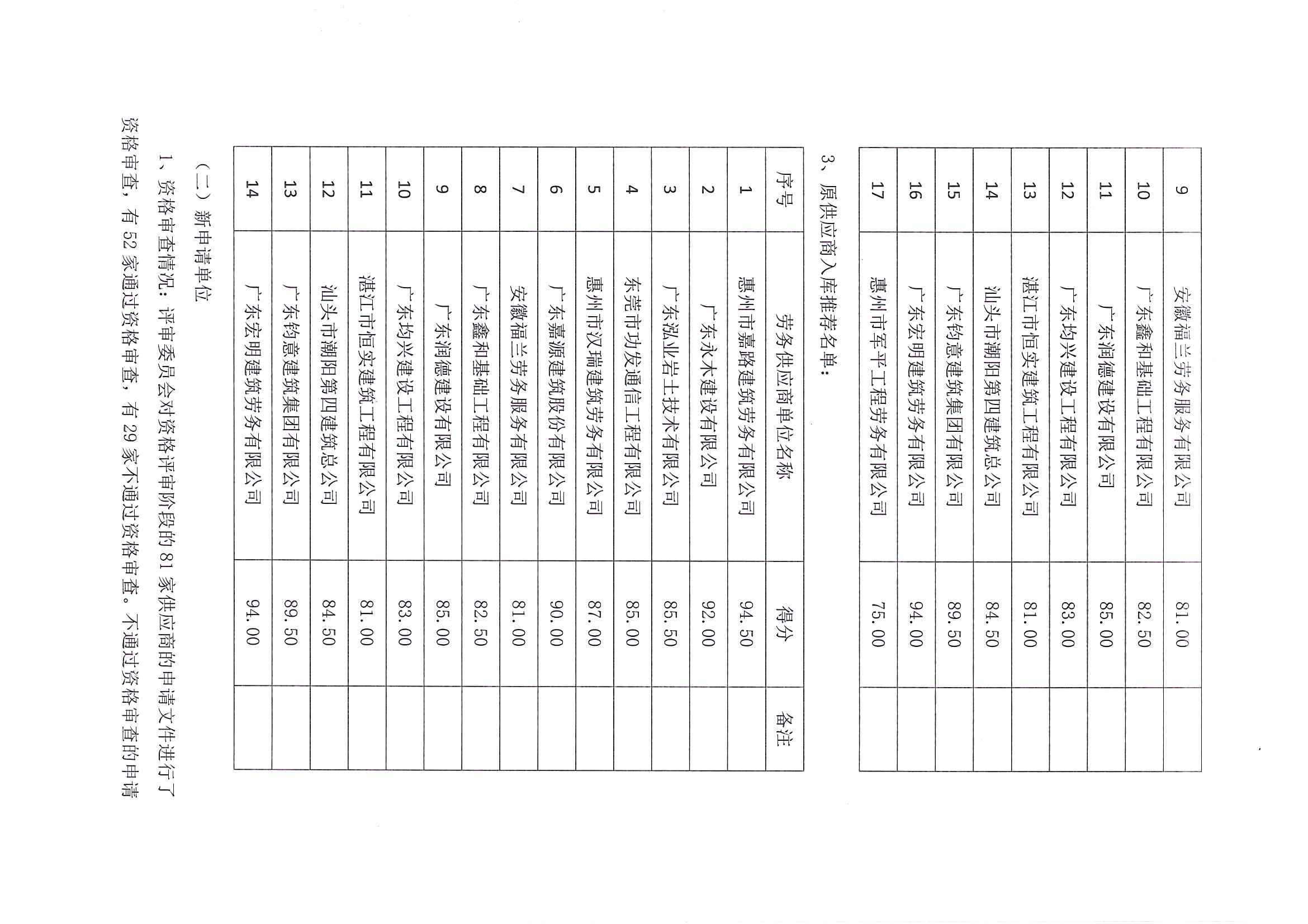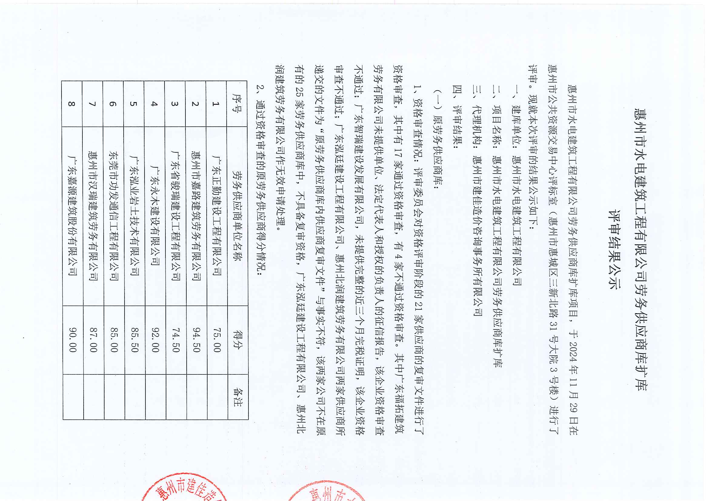 惠州市水電建築工程有限公司勞務供應商庫擴庫評審結果公示