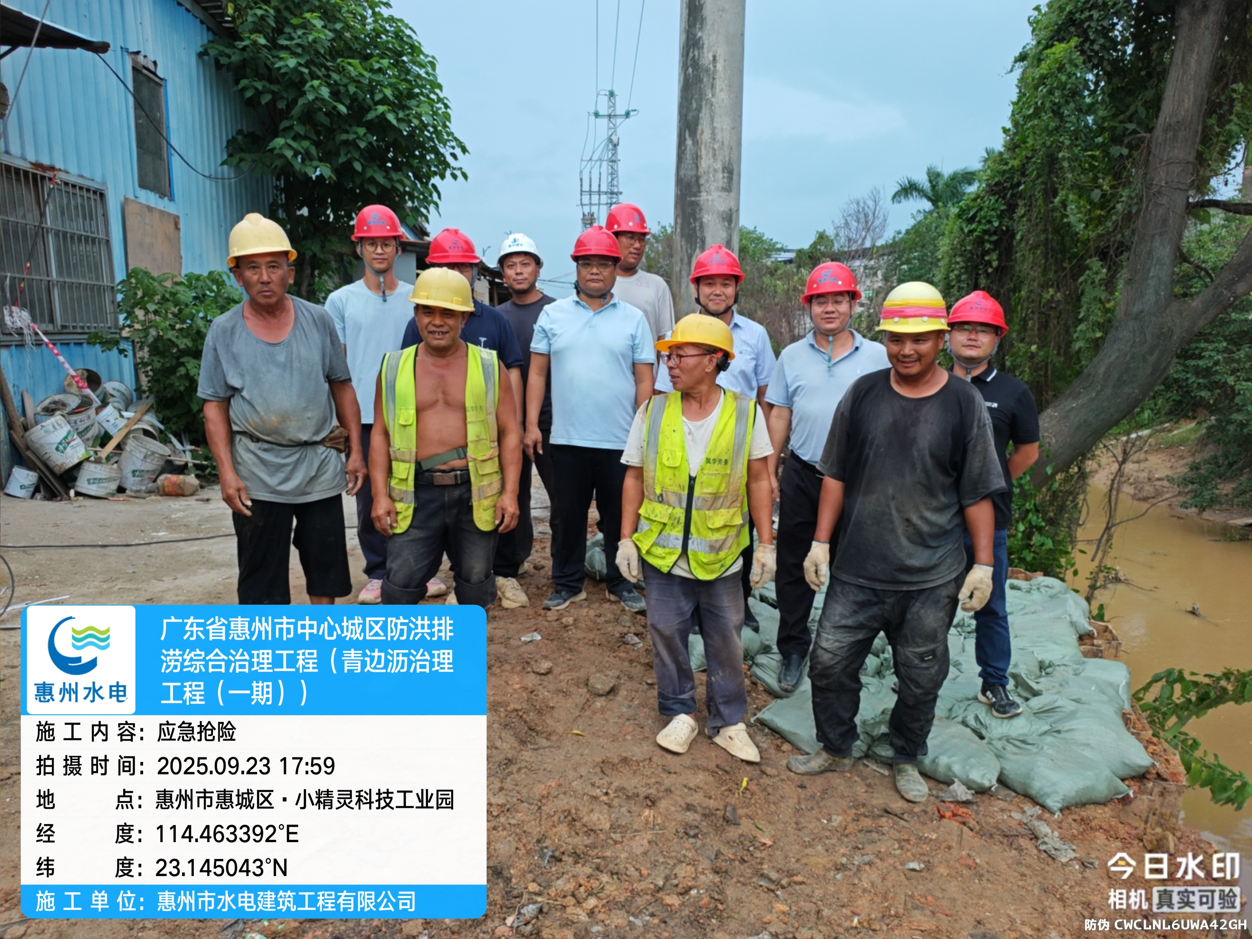 2025年9月23日中午11時30分,我司接到惠城區農水局與惠城高新技術産業開發區管委會的緊急搶險通知,青邊瀝青邊橋下遊右岸約一百米處的堤防邊坡發生嚴重坍塌,險情導緻邊坡上方10KV高壓電線杆出現傾斜,周邊房屋面臨滑移風險,形勢十分危急。