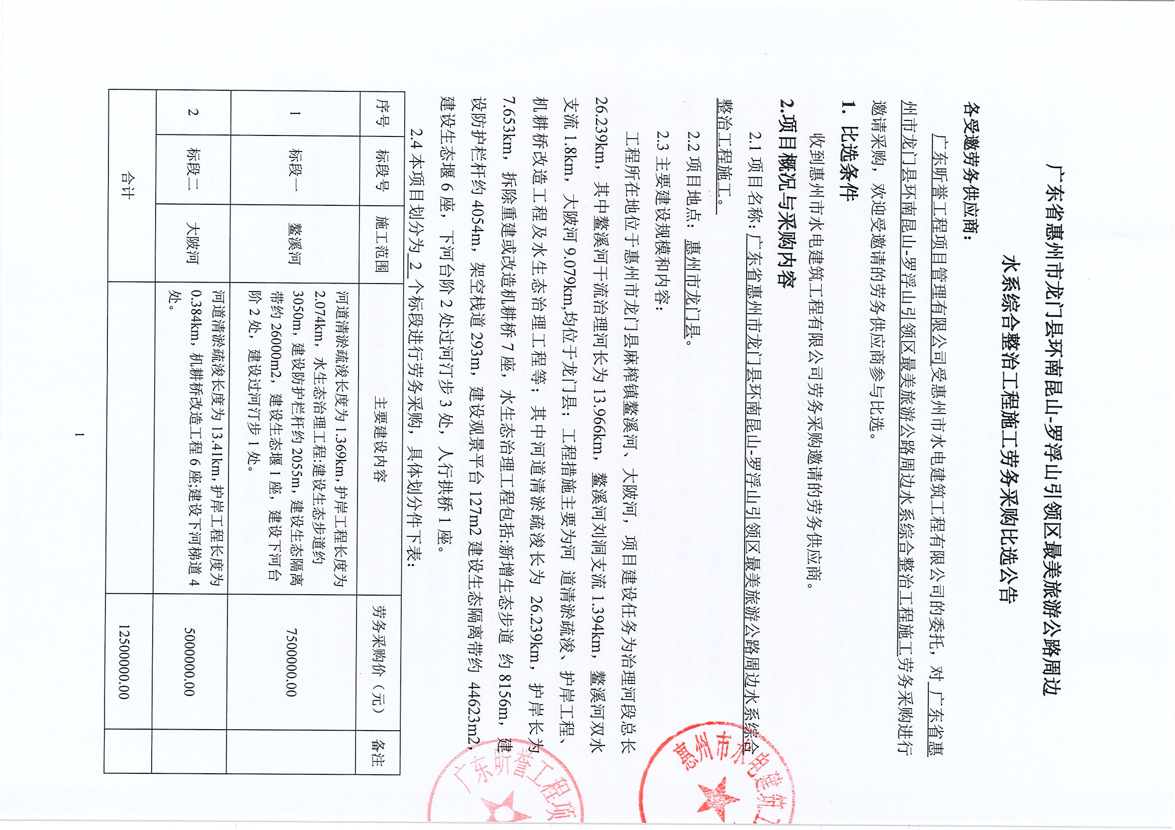 廣東省惠州市龍門縣環南昆山-羅浮山引領區最美旅遊公路周邊水系綜合整治工程施工勞務採購比選公告