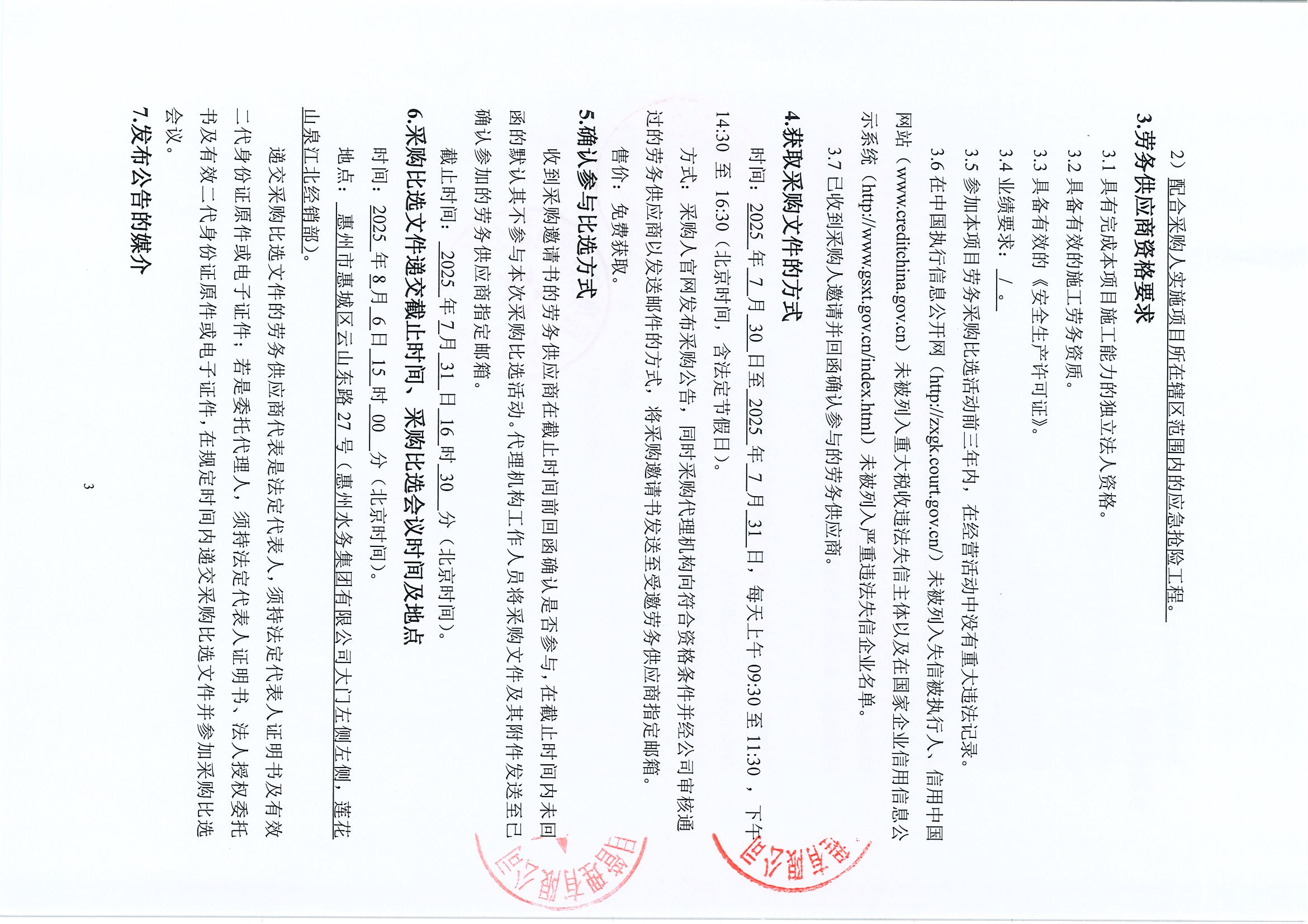 博羅縣河肚水水系綜合整治工程和博羅縣瀾石河水系綜合整治工程勞務採購比選公告