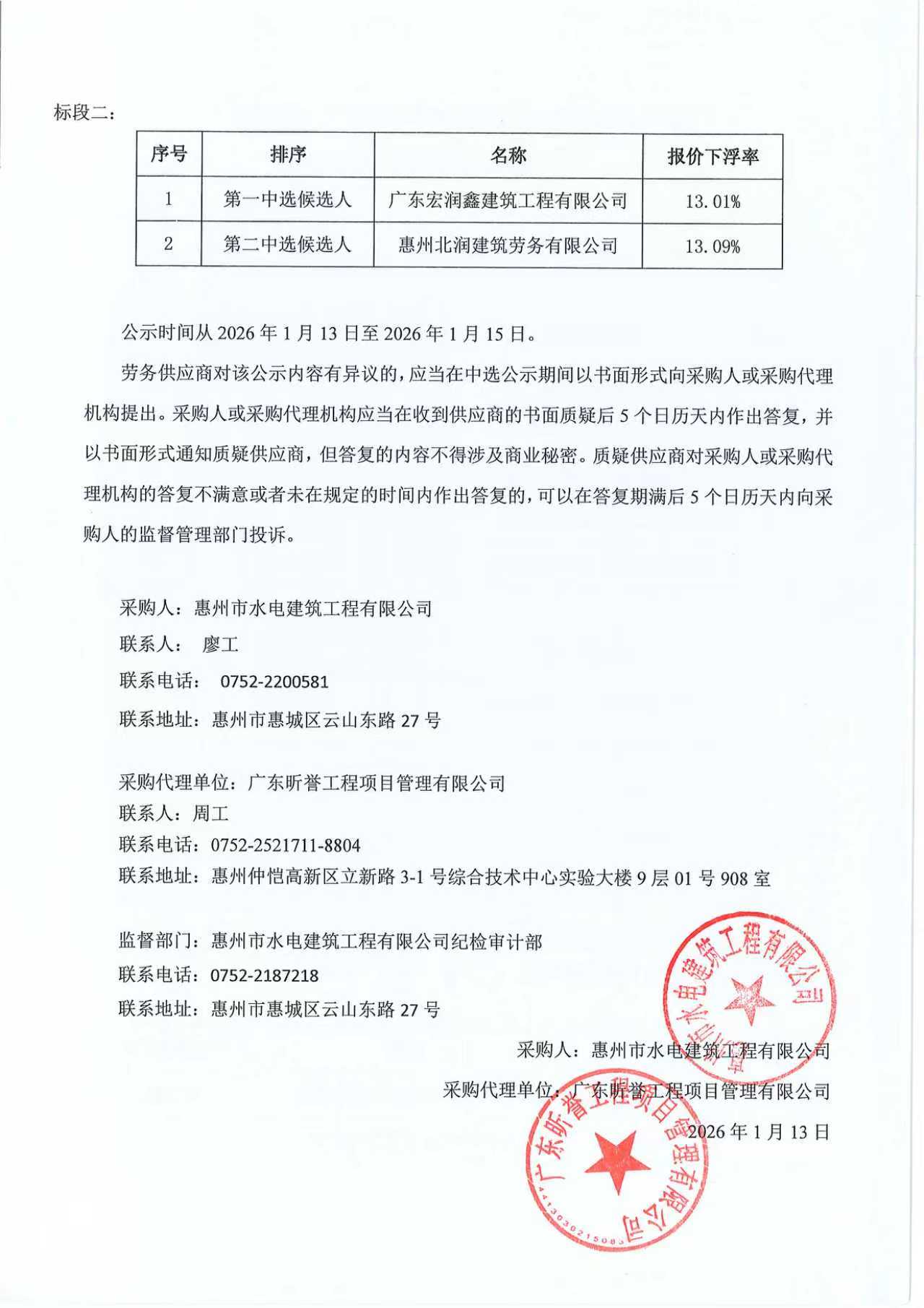 廣東省惠州市中心城區地下管網系統提升工程-雨水管網建設項目一期(惠城中心區)施工勞務採購中選候選人公示