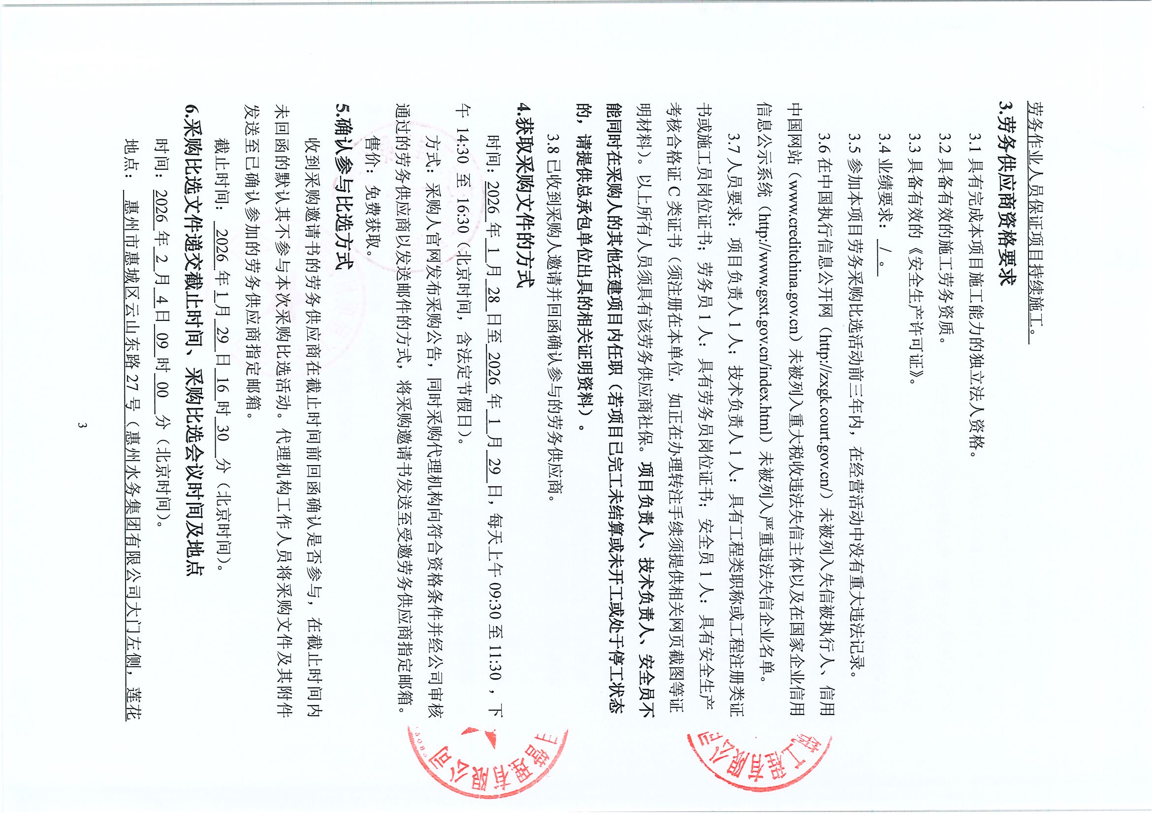 廣東省惠州市中心城區地下管網系統提升工程第二批(區住建局實施)施工(一期)勞務採購比選公告