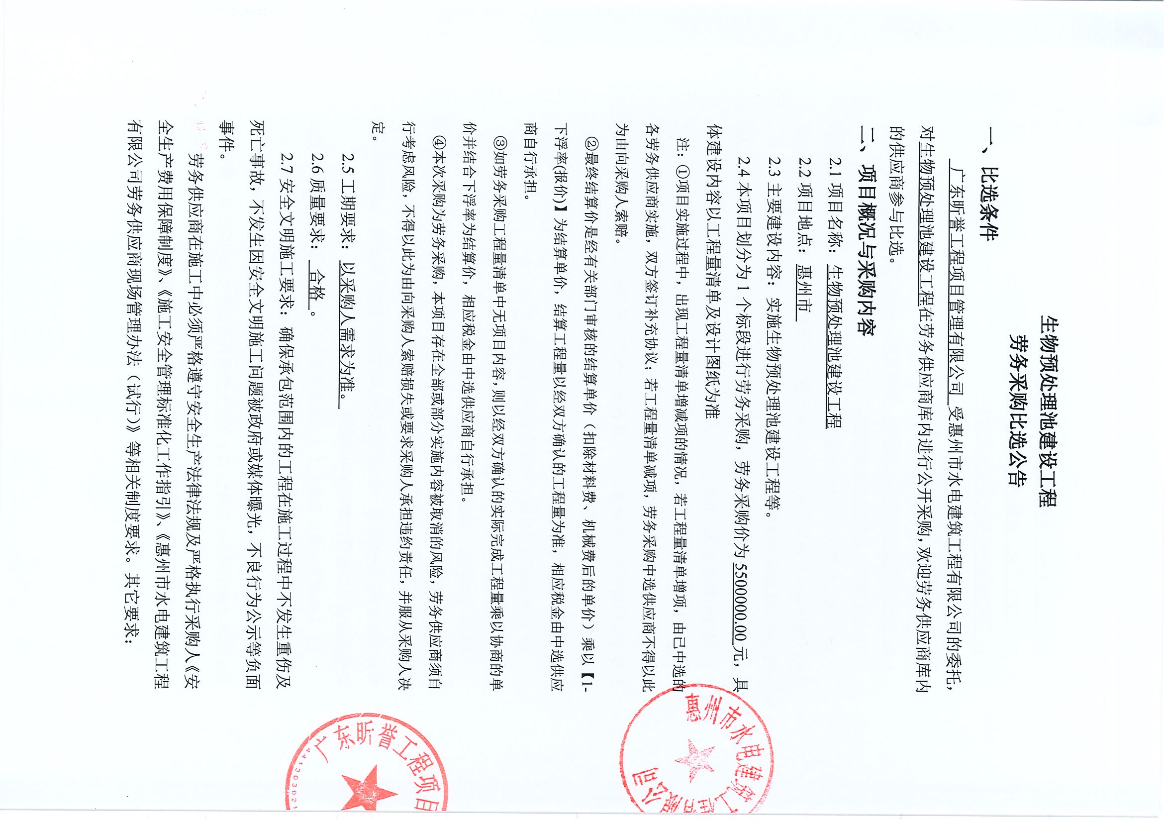 生物預處理池建設工程施工勞務採購公告