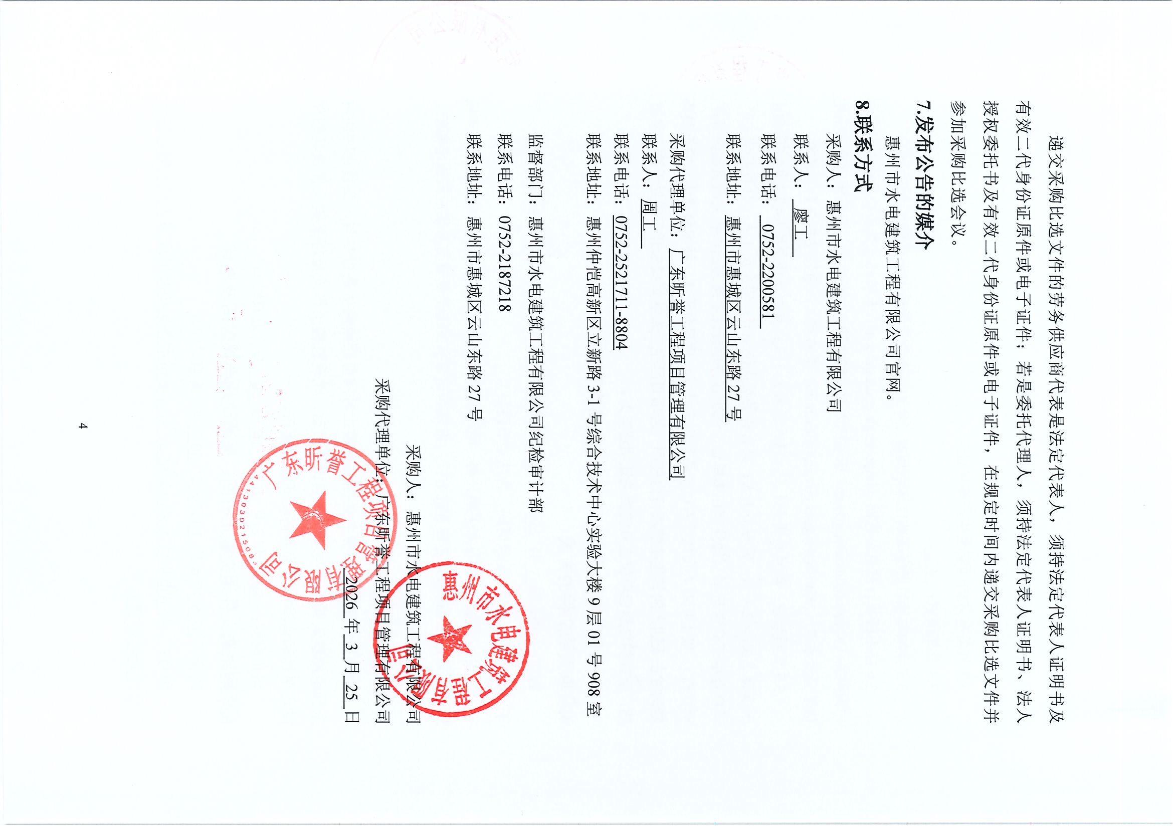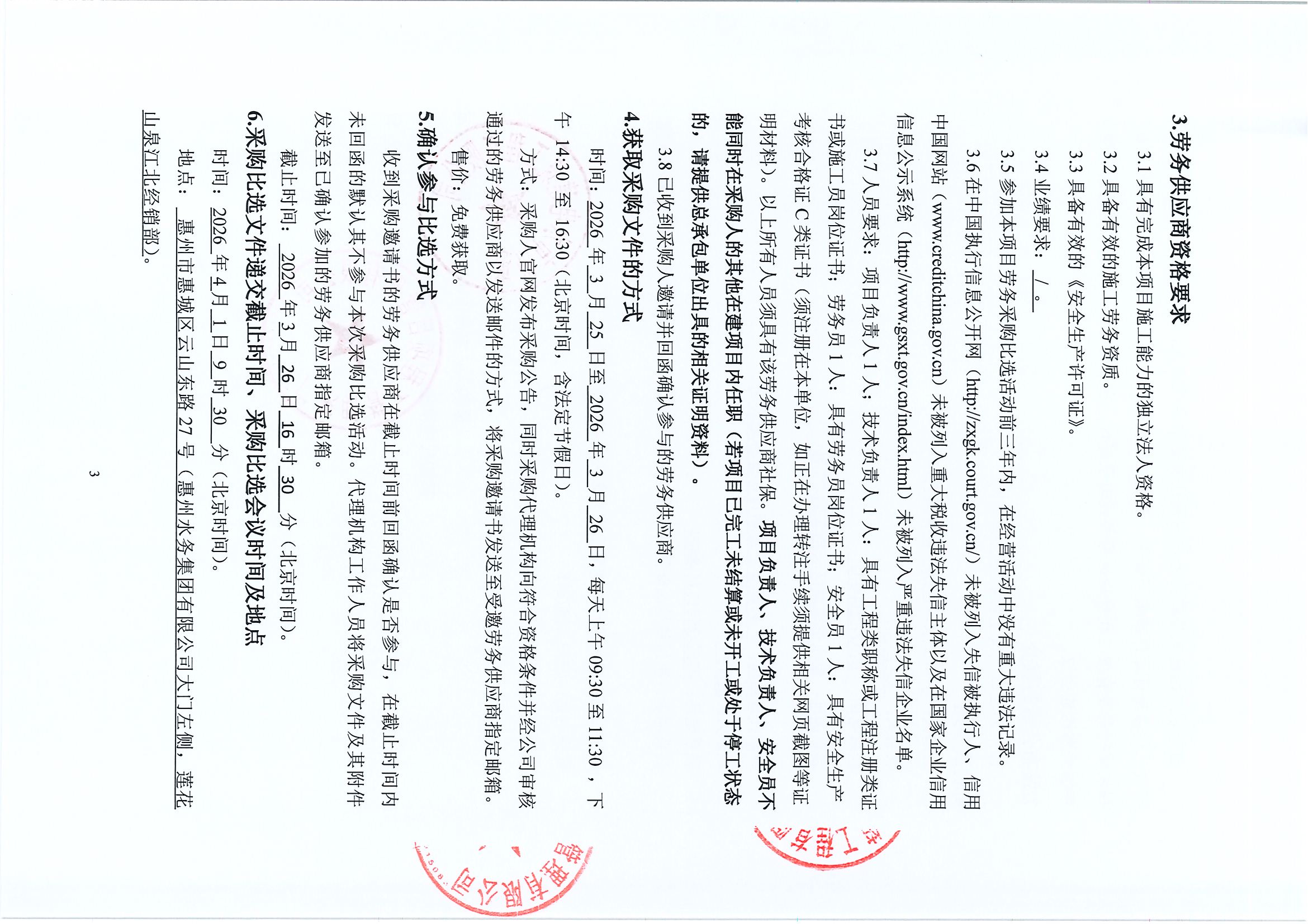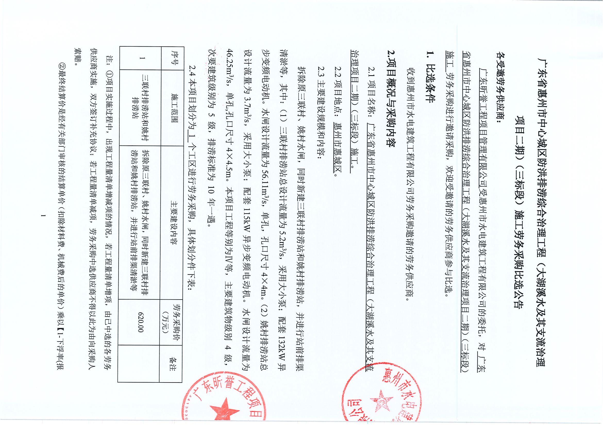 廣東省惠州市中心城區防洪排澇綜合治理工程(大湖溪水及其支流治理項目二期)(三标段)施工勞務採購比選公告