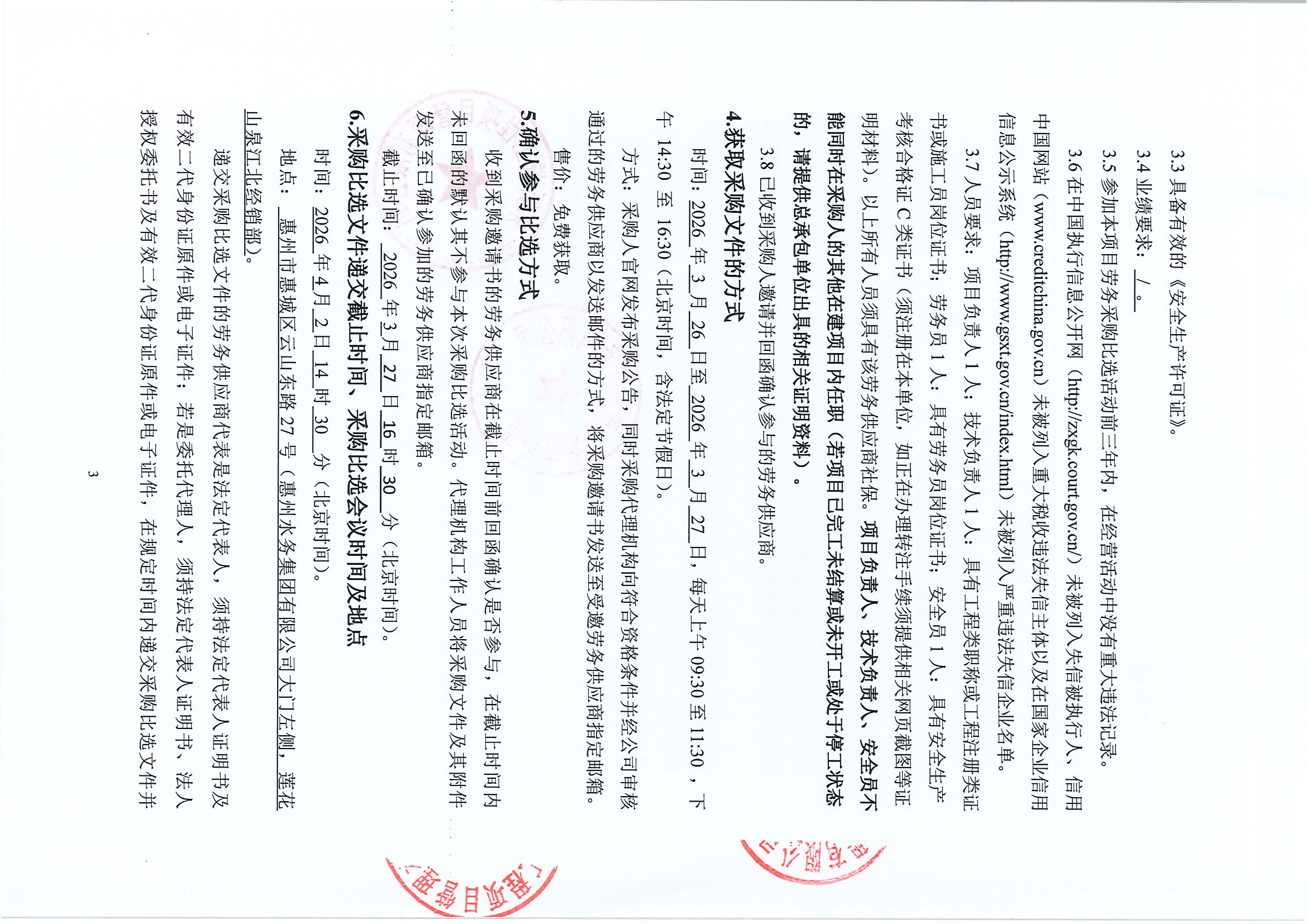 廣東省惠州市中心城區防洪排澇綜合治理工程(大湖溪水及其支流治理項目二期)(三标段)施工勞務採購比選公告