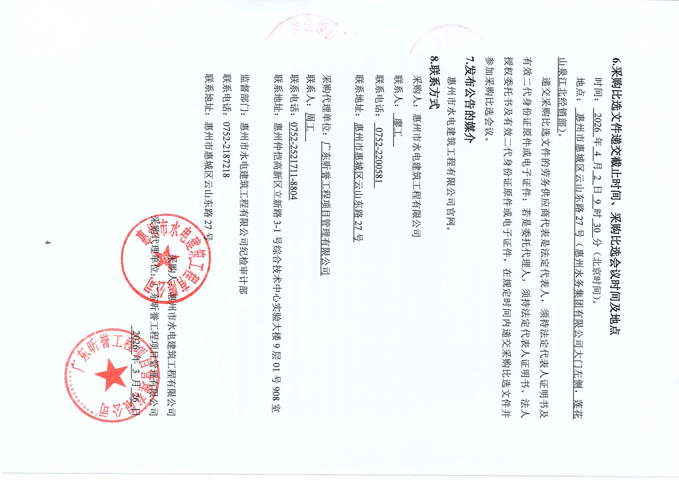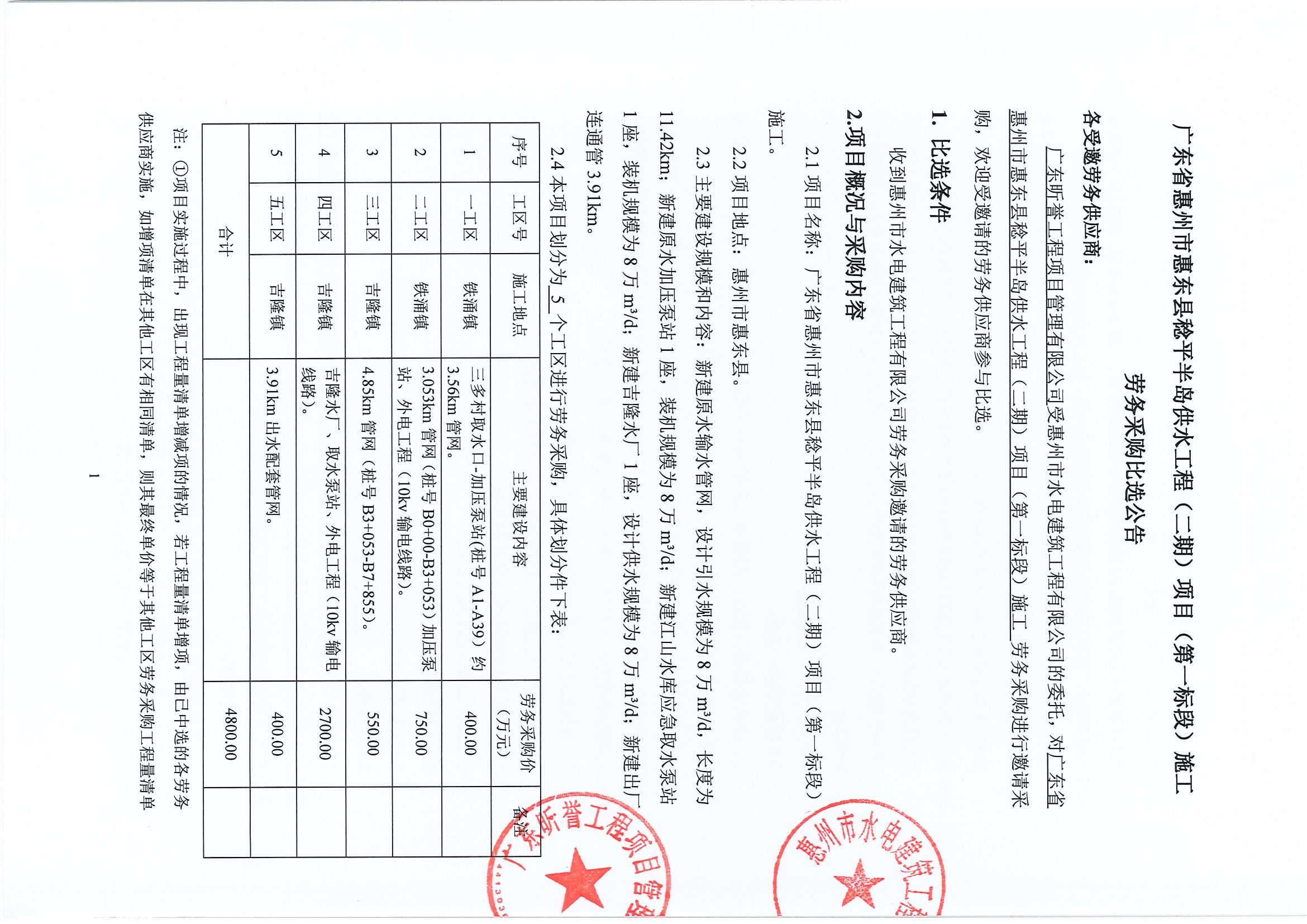 廣東省惠州市惠東縣稔平半島供水工程(二期)項目(第一标段)施工勞務採購比選公告